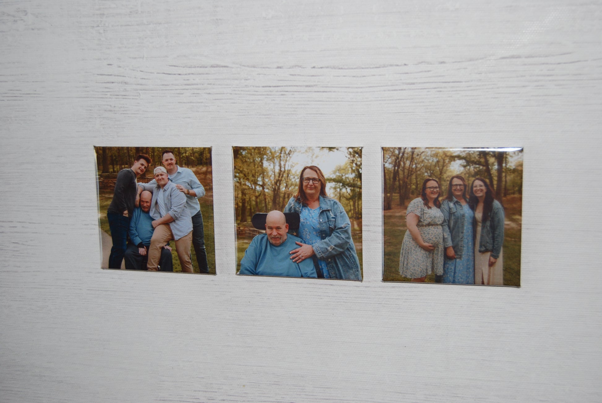 Custom 2.5"x2.5" square magnets. Please consider using the highest resolution photos for the best results! (Once your photos are uploaded please click on each photo and use the cropping tool below to center your photo how you would like it to show on your magnet)